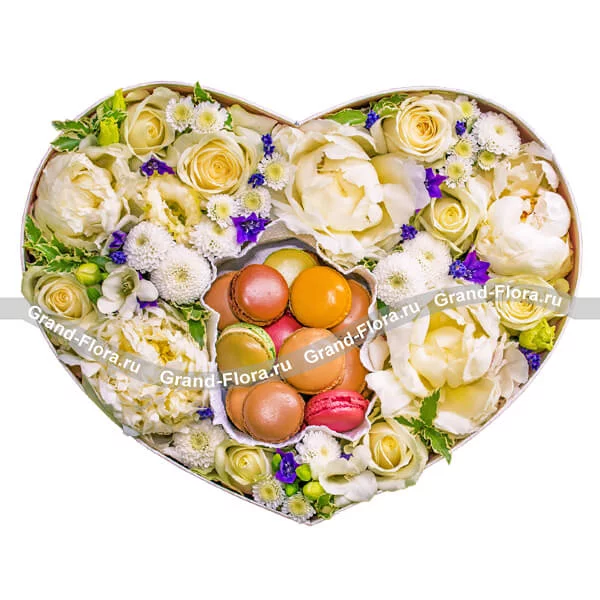Сладкая жизнь - коробка с пионами и макарунс